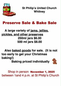 Nov. 1st, 2025 Preserve and Bake Sale St. Philip’s Whitney 2025/09/21 | Announcements, Community Events, St Philips Church