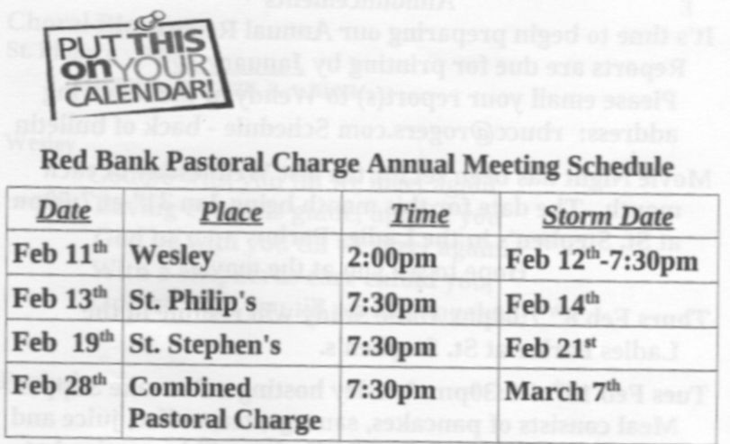 It is that time of year again and the year end reports are now due. A electronic version, in Word, Excel or similar should be emailed to the Pastoral Charge Treasurer as soon as possible.